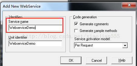 WSDLLocation属性值为http://localhost/webserviceDemo/Project2.dll/wsdl/IwebServiceDemo,代码如下: