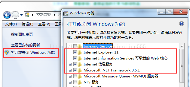 7.在控制面板中添加IIS(已添加请略过)