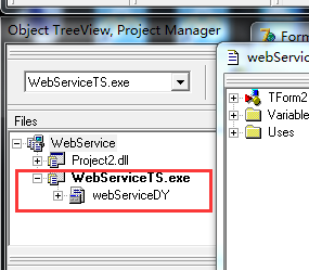 1.在原有的BPG包中新建一个应用程序,命名为WebServiceTS,单元窗体命名为WebServiceDY
