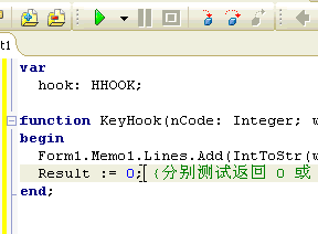如果给键盘的钩子函数 Result := 0; 说明消息被钩子拦截并处理后就给 "放" 了;